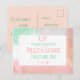 Ett modernt, stilrent och vackert tropiskt vattenfärgssvarskort i trendigt korall, persika och nymintgrönt, perfekt för tema som inkluderar ö och strandbröllop. Detta vykort är ett ekonomiskt val för bröllop på en budget som är prisvärt utan att se billigt ut och är lätt att anpassa. Lägg det i kuvertet med de matchande platta inbjudningarna och genom att lägga till förbetald returporto kan du göra det enkelt för dina gäster att svara genom att bara markera sitt svar och släppa det i posten så att du vet hur många deltagare du ska planera för i förväg! Detta är ett bra val för både små och stora bröllopssammankomster.