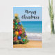 Tropiskt kort för hälsning för strandträdgod jul. Gör det ditt eget, genom att klicka "att skräddarsy den", knäppas och tillfogar ett personligmeddelande. Kontrollera ut våra helgdagportofrimärken för en snyggt långt för att posta dina kort.