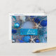 Jul vid havet! Lägg till det här fantastiska kustinspirerade vykortet till det tropiska temat helgdag firande. Fotobilden på vykortet innehåller stjärnfisk, strimlad fisk, sjöfågel, musslor, korall och prydnadsfiskar bollar i olika snäckor av silver, blått och vitt. På plaketten står det "Seas 'n Hälsning". Oavsett om du användor vykortet för att skicka semesterhälsningar, som en inbjudan, tackkort eller hantverksprojekt, är det säkert att du startar en coola kustvibe! Vykort i halvglans eller projektionsyta avslutas. Anpassa utan extra kostnad. Fotografi av Glenda Motsavage, en Florida-baserad resekoramatör och författare. Bild från Orlando Museum of Art, festival av Träd.