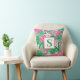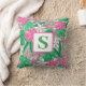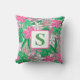 Tropiskt lågmogram Rosa Vit Grönt Preppy Kudde