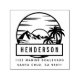 Frimärke är perfekt för den där utblottade individen eller det unga paret som tittar för en personlig kontakt för sin utskicklighet. Denna utformning illustrerar ett bergslandskap med en solnedgång, havsområdet och handflatan träd ge det som en tropisk, äventyrlig känsla. Grund i illustrationen står ditt efternamn och din returadress under. Klicka på knappen "Anpassa" för att lägga till egna detaljer.