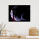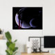Tittar från yta i en avlägsen värld ser vi två handflatan träd falla tillbaka av en fantastisk moonscape.