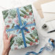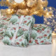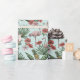 Detta eleganta tropiska flamingo-inslagspapper har ett blommigt mönster med handritade rosa flamingor, hibiskus- och jasminblommor, ananas, bananblad och tropiska drycker, allt mot en elegant mjuk mintgrön bakgrund.
