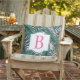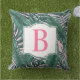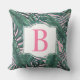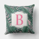 Tropiskt mörkt palmlöv rosa monogram initial kudde