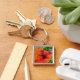 Tropiskt Neon Hibiscus-blomma Fyrkantig Silverfärgad Nyckelring