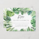 Modernt tropiskt palmlöv akvarell bladverk RSVP-svarskort. handskriven text. En del av en trendig sommar-kollektion. Bakgrundsfärgen kan ändras.