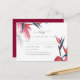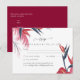 Vackra, livliga tropiska blommor och Pampas-löv pryder denna moderna destination, strand, ö, hawaiianskt tema för luau-brölloppsdetaljer. Färgerna är marinblå, vinröd. Det är en del av en större kollektion som inkluderar bröllopsinbjudningar till budgetpris, RSVP-kort, save-the-date-kort, presentetiketter och etiketter, kuvert, bröllopsgåvor till brudpartyt och gåvor till nygifta som passar med mera. Se den bifogade kollektionen för att se dem alla.