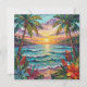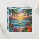 Vacker tom notkort med en fantastisk AI-impasto oljemålning stil illustration av det blå havet, en sandstrand omgiven av palmer vid solnedgång.