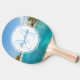 Ping pongpadle med ett vackert foto med en tropisk strandort. Söt blå stranden vatten och vit sandstrand med överskötta hinnor ge det en stillastående övibe. En vit cirkel som läggs ovanpå med ditt namn och som initialt innehåller ett monogram.