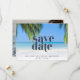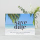 Ge dina gäster en smal kik av paradiset som väntar med vår tropiska Beach Photo Bröllop spara datum! Den här fantastiska designen ger dig en skymt av din drömdestination, ditt badbröllop på stranden och bjuder in dina kära att gå med i firande i kärlek, sol och sand. Låt detta datum vara perfektens införande till den tropiska magin på er speciella dag!