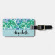 Den här bagageetiketten är en personlig med ditt första namn i en handskript på framsidan och dina uppgifter på baksidan. Den är en turkotisk, grönt och vit tropisk handflatan-träd-figur. Perfektens personliga gåva eller tillbehör till tillfälle! MATCHING-resväska och mer i vår resesamling.