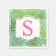 Tropiskt Rosa Aqua Grönt Handflatan Lövs Monogram Pappersservett