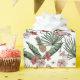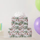 I denna elegant är det pappert med tropiskt flaminslagning i ett blommönster av handdragna rosa flamingos, hibiscus och jasmin-blommor, ananas, bananas och tropiska drycker, allt mot en vit elegant.