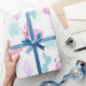 Gentla färg med tropiska sömlösa mönster med flamingos och kaktus i ljusblå och rosa. Kolla in vår butik om du vill ha mer inslagning papper som passar för barnens födelsedagar och babyduschar.