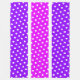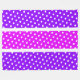 Den här festliga sportdesignen har ett stort tropiskt centrum för rosa i tävla rand, som beskrivs i vitt och som förenas med de ljusa ränderna i lila kant. Festive tiled white polka dots springa under hela konstruktionen.