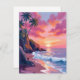 Tropiskt Rosa Sunset Ocean Watercolor Card