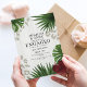 Fira den framtida herr & fru med detta djärva och vackra tropiska förlovningsinbjudan. Med rika gröna palmblad, en slående röd hibiskusblomma och mjuka leopardtrycksmönster, är det den perfekta blandningen av exotisk flair och modern glamour.
