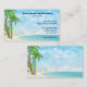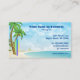 Det här affärskortet har en surfbräda på en tropisk strand med handflatan träd. Vatten är ett vackert blått och det finns moln som är spridda i himlar. -