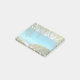 Ett fantastiskt foto av en tropisk strand. Vatten är kristallklart och azurblått. Bilden ramas in med några skyddande handflatan fronder. Sanden har fin vit sand. En mycket lugnande relaxande bild.