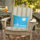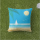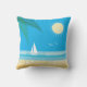 Denna roligt är utvändig kudde med en tropisk strandscen accentuerad med stjärnfisk, fiskmås, en segelbåt och handflatan löv på en ljus blå himmel-bakgrund, skapar den perfektens sommartid som tillbehör till båt, strandhus, bassäng hus, stuga, bäcken eller bassäng-område.