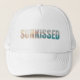 Slå stranden i stil med den här roligten hatt. Den här designen har en vit bakgrund med fet, tropiskt solnedtrycksbokstäver. Skydda ansikte från sol och se underbar ut! Det här är perfektens semesterhatt.