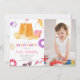 Gör en storslagen entré med denna soliga strandfödelsedagsinbjudan med foto! Med tropiska illustrationer som flip-flops, vågor och strandbollar, tillsammans med en plats för ditt barns foto, är denna redigerbara design perfekt för poolfester och strandfiranden. Anpassa namnet, åldern, festdetaljerna och ladda upp ditt favoritfoto med Zazzles enkla designverktyg. Perfekt för sommarfödelsedagar, strandaktiviteter och tropiska teman.