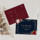 Den här geometriska rödtropiska guld-glitter-besparingen är perfekten för ett bröllop. Den konstnärliga utformningen av Border marsala har vattenfärg, grönt, rosa, burgundy och ro, som har en grön, nyktert placerad kring det geometriska ramarna i guld i en strålande blombukett.