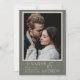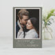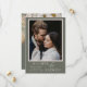 Modern spara datum meddelande är prefekt för att få era boho bröllop-planer i rörelse. Den har en fotomall och namnen i ett stort typografiskt skript i kräm på en grönt för mörk. På baksidan av kortet finns en chic tropisk bukett av handflatan löv, pampas gräs och stora ecru- och vita blommigtar och initialer i ett monogramformat stil. Anpassa den här sofistikerade mallen med dina egna uppgifter.