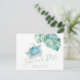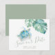 Gör dig redo att ropa ”Vi ska gifta oss!” i tropisk stil. Meddela att ni är förlovade med det här tropiska ”Save the Date”-kortet som visar frasen ”Save Our Date” i en handskriven typsnittsstil. Designat för par som planerar ett kust- eller destinationbröllop, visar det här akvarellkortet min originella målning av en lugn havssköldpadda omgiven av monstera-blad och mjuka, salvia-gröna accenter. Det är perfekt för havsälskare, strandbröllop och avslappnade firanden i Florida Keys, Hawaii eller någon annanstans som är varm och solig.