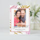 Rosa ros Guld Watercolor och Faux Gold Foil Tropical Spara datumfoto Postcard med Tropical Blommigt Handflatan Löv. Det här sparar datumet är perfekt för en strand eller ett tropiskt destinationsbröllop. Kontakta designern om du vill ha ytterligare anpassade matchande objekt.