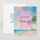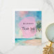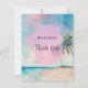 Denna vykortdesign presenterar en lugn och konstnärlig tolkning av en tropisk strand, återgiven i en lugnande pastellfärgspalett som blandar mjuka rosa, blå och varma solnedgångstoner. Silhuetterade palmer pryder vänster sida och inramar kustutsikten där milda havsvågor möter den sandiga stranden. I mitten fungerar en mjukkantad, organisk lila form som en modern fokuspunkt som överlagrar horisonten för att ge kontrast åt den handskrivna stilen på texten som lyder "Wishing You Well". Den övergripande kompositionen frammanar en känsla av fred, lugn och varma sommarvibbar, vilket gör den till ett idealiskt val för ett genomtänkt och uppmuntrande vykort.