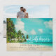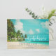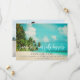 Praktfull tropisk strandscen bröllop sparar datumet för ditt strandbröllop. Vacker strandscen med meddelandet "Sandiga tår och salta kyssar" tillsammans med era namn, bröllopsdatum och plats. Lägg till er förlovningsbild på baksidan. Skicka dessa kort till familj och vänner, be dem spara datumet och vara en del av en speciell dag som inleder ett livslångt kärlek och lycka.