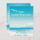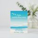 Turkosblå hav och klar blå himmel. Havsvågor kraschar mot stranden, måsar flyger i himlen och en siluett av palmer - Helt anpassningsbara bröllopsinbjudningar och matchande tillbehör.