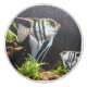 Fin strimlad tropisk fisk i ett Aquarium i en nederländsk djurpark. Känn del av naturen i ditt badrum! Objekt i den tropiska strimlade fisklinjen. Du hittar fler matchande produkter i vår samling av Bathroom-tillbehör!