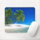 Musmattan visas med ett fototryck av en vacker tropisk strandscen. Anpassa det här objektet eller köp som det är. Lagrar-bild