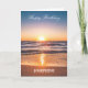 "Skicka varm födelsedag önskemål med vårt födelsedagskort "Ocean Sunset Beach". Låt stranden och solnedgångens livliga nyanser förmedla ditt hjärtliga firande. Fånga kärnan i ett stillastående havsområdets ögonblick för att göra deras födelsedag verkligt speciell. glädjen i tillfälle med detta unika designade kort."