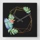 Tropiskt svart guld- Flamingolöv Poligonal för Fyrkantig Klocka