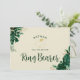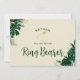 Tropisk Lövverk Modern Grönska och Blad Kant Personliga Kommer Du Att Vara Min Ringbärare Förslags Kort. Perfekt för din tropiskt tema bröllopsbrevpapper. I en djärv färgpalett av rika gröna, smaragd och guld folie utseende. Denna design är perfekt för ett strand, destination eller sommar bröllop. Med känslor av en tropisk paradis, kommer denna livfulla palmblad design att komplettera din strand eller tropiska bröllopsplats. I en mörkgrön, teal, smaragd, grönska och guld färgpalett - Kommer Du Att Vara Min Ringbärare Förslags Kort.