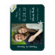 Spara datumfotomagnet med ett tropiskt tema. Mörk teal färg med en stjärnfisk och vita plumeriablommor. Lägg enkelt till ett foto och välj antingen storlekt. Bilder som är lodrät, 4x6 eller 5x7 (eller liknande) fungerar bäst.