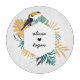 Elegant skärbräda med en tropisk ram med blad och en abstrakt tukan fågel. Detta kan anpassas med ett pars namn. Namnen är i ett svart skrivstil. Bakgrunden är vit. Hjärtats färg kan redigeras genom att gå in i designverktyget, välja hjärtskiktet till vänster och sedan klicka på färgrutan till höger för att få fram ett färgschema.