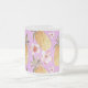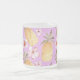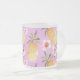 Tropiskt tryck av retro-ananas på lilak-bakgrund frostad glasmugg