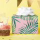Tropiskt palmträdmönster med en rosa bakgrund.