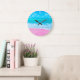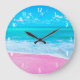 Den perfekt strandväggens klocka med ett foto av en serenisk tropisk rosa och strand. Gör perfekten till en gåva till någon som kärlekar stranden och tropisk semester.