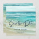Sprid nyheterna och gör stänk med detta Spara datumkortet med vattenfärgen vinkart i tropiska turkoser som flödar över strandsand, med namn, datum och destination i sjöflottans text. Art av KL Lagrar