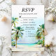 Den här eleganten och det vackra bröllopet OSA med vattenfärg ger gästerna ett val av måltid och har en strand, blå himmel och handflatan träd. Texten kombinerar handskript och sans serif typsnitt för en snyggt och ett modernt utseende. Det här är perfekt för en sommarstrand eller ett tropiskt destinationsbröllop.