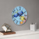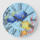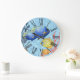 Den här väggklockan har en coola under vattenytan. Färgfulla tropiska fiskar simmar bland korall- och havsplantor. Vatten verkar realistiskt för att likna ett akvarium.