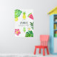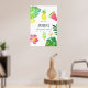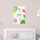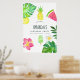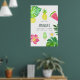 Sommar födelsedagsfest firande välkomnar poster med exotiska tropiska blad och blommor, färska frukter och kiwi-fruktpopsikel.