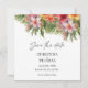 Fira din speciella dag i tropisk elegans med våra fantastiska vattenfärgade tropiska blommor bröllop spara datum. Det här vackert utformade kortet har vibrerande och exotiska tropiska blommor som delikatärmålas i mjuka pastellnyanser och skapar en romantisk och vismisk atmosfär för dina gäster. Använda verktygen Anpassa och utforma om du vill ändra text, typsnitt och färg. Tillgänglig även som hämtning.