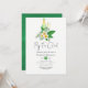Vattentärsfärgning av tropisk bladbild, fizz clink-inbjudan med anpassade för elegantens handskriftsformat till dina händelsespecifikationer.