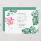 Planerar du en babydusch och undrar var du ska köpa inbjudningar? Den här sommarinbjudan innehåller din namn-uppsättning i en handskriven skripttypografi för snyggt med händelseinformation i ett klassiskt grått-serif-teckensnitt på en skarp vit bakgrund med en kantlinje av min ursprungliga vattenfärgsflamingo och monstera handflatan löv i skuggor av blåsor, gröntar och turkoser. Kortet inbjudan går tillbaka till en kompletterande tropisk turkos grönt färg. Ett botaniskt men elegant val för avslappnad strand, Florida Nycklar, Karibiska och kustnära möhippor, par duschar och co-ed babyduschar. Om du vill se hela mitt bröllop-kontorsprogram kan du besöka DotellABelle på Zazzle.